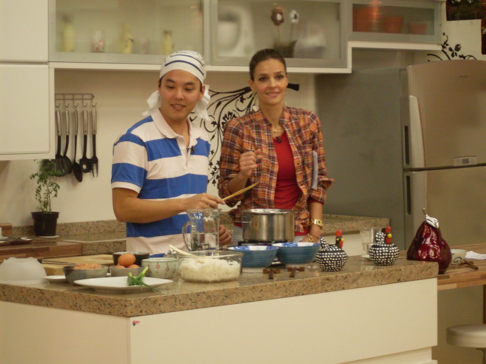 Quem esteve em nosso programa desta vez mostrando seu lado gourmet, foi o fisioterapeuta Felipe Yamaguchi, especialista em osteopatia, trazendo um cardápio diferente: uma culinária japonesa. Vejam que ele deu uma caprichada no visual... usando uma bandana.